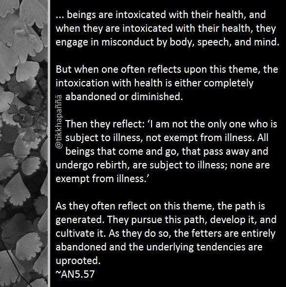 And for the sake of what benefit should a woman or a man, a householder or one gone forth, often reflect thus: ‘I am subject to illness; I am not exempt from illness’?