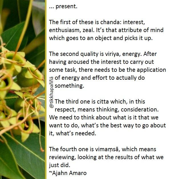 To achieve anything, whether it is wholesome, unwholesome or neutral, ‘the four bases of success’ need to be ...